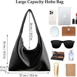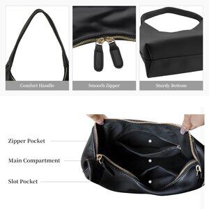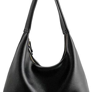 Features: Trendy hobo style design with a simple, cute, and fashionable vibe. The vegan leather material feels soft and waterproof, with premium gold hardware and a double zipper for durability and elegance. Spacious enough to hold wallets, cosmetics, keys, sunglasses, and your mobile phone, making it perfect for day-to-night use.