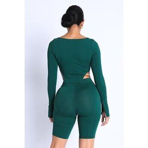 Women Side Cutout Square Neckline Crop Top And Matching Biker Shorts 2 Piece Set Condition: New with tags Color: Hunter Green Fabric Type: Jersey Material: 95% cotton, 5% spandex Number of Pieces: 2 Piece Type: Outfit/Set Features: All Seasons, Crop, Elastic Waist, Quick Dry Sleeve Length: Long Sleeve Set Includes: Top, Shorts Size Type: Regular Fast shipping!!!!!!! This Side Cutting, long sleeve, square neckline crop top and shorts set is perfect for your daily activities. This crop top features side-cutouts and is made of high quality material, which is comfortable to wear. The matching shorts are very flattering, shape the body gracefully and are easy to put on and take off. Great for night, party, club, going out, beach, tennis, gold, sports, activewear, date, dinner, cocktail, evening, school, fitness, workout, daily wear.
