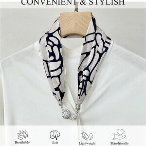 MAGNETIC DESIGN: The silk scarf closes with a magnetic buckle for a knot-free design that makes it convenient to wear. Compared to traditional knotted closures, this magnetic scarf allows you to avoid loose knots or wrinkles for a neat and beautiful appearance. With one magnetic and one pull, you can easily switch and complete your look.