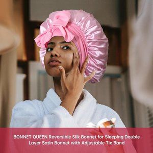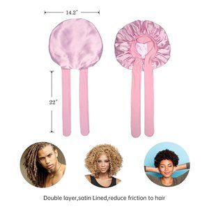 Luxurious double-layer satin bonnet, designed with hair's protection and comfort in mind. This silk bonnet is made from high-density satin with durability that is soft, smooth, and hypoallergenic, ensuring that it's gentle on your hair. The double layered design, with a layer of satin on the inside and outside, minimizes friction and prevents hair breakage. This superior-quality bonnet helps to retain moisture and preserve your hairstyle, while also providing extra protection