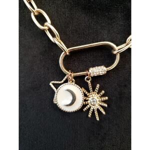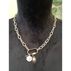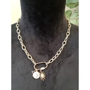 Women Silver Chain Necklace Moon Sun Charm Carabiner Lock Fashion Jewelry