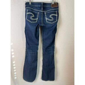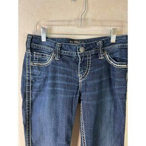 Women Silver Frances Jean Y2K 90s Dark Wash White Stitching Sz W28/L33