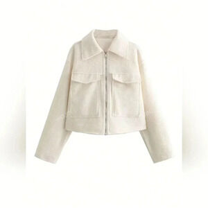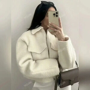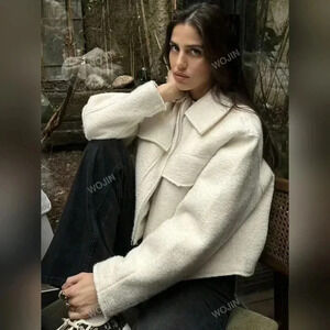 Women Simple Solid Color Woolen Jacket Top