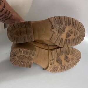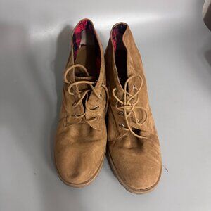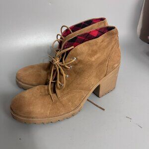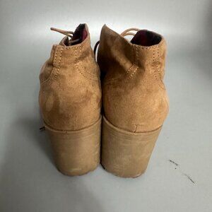 Women Size 11 tan brown Chunky Heel Ankle Boot faux suede Lace up 90's Y2K