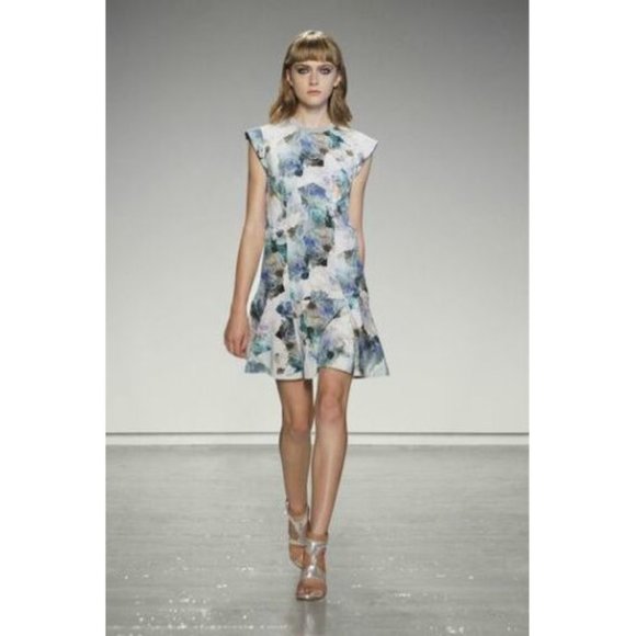 Women Size 2 Rebecca Taylor Enchanted Gardens Drop-Waist Floral-Print Mini Dress
