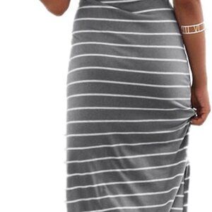 Women Sleeveless Maxi Dress Cotton Spandex Stripe Casual Summer Beach Vacation