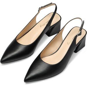 Exquisite Heels: These 2.36-inch women's slingback heels feature a sleek and slender pointed toe design, adding an elegant and sexy touch to your figure. The adjustable buckle strap of the block heel pumps ensures a perfect fit for various foot shapes.