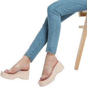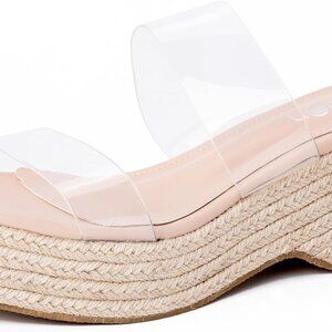 Women Slip On Espadrille Sandals Nude Size 8 Clear Strap Cushioned Wedges