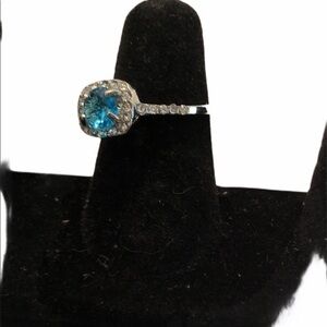 Women Sliver Sea blue zircon CZ Ring Size 5.5