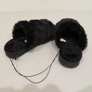 Women Small Black Slip-on Slippers Cozy Mountain Memory Foam Rubber Sole New