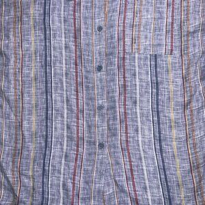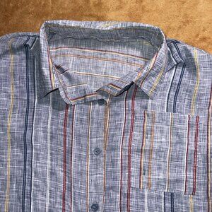 Women Small Blue Stripe Collar Button Up Roll up Short Sleeve Poly Shirt (P)