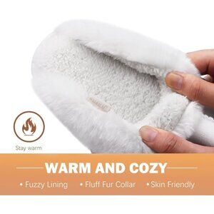 Trendy Womens House Slippers: Delicate colorful micro suede upper matches meticulous seaming outline the contour of the slippers and interprets the elegant charm of fashion and simplicity. Fluff faux fur scuff slippers with a comfortable feel and and light appearance, exude the gentle temperament of women in cold winter.