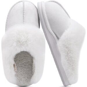 ⚡Women Snow White Suede Fluff Dual Memory Foam Arch Support Warm Scuff Slipper