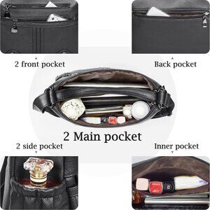 Multi Pockets Handbag! This womens shoulder bag has a 2 front zipper pockets, 2 main zipper pockets, 1 zipper internal pocket, 2 side pockets and 1 anti thief back zipper pocket. Keeping wallets, mini umbrella, iPad, mobile phones, planner, pens, coin purse and other daily essentials well organized.