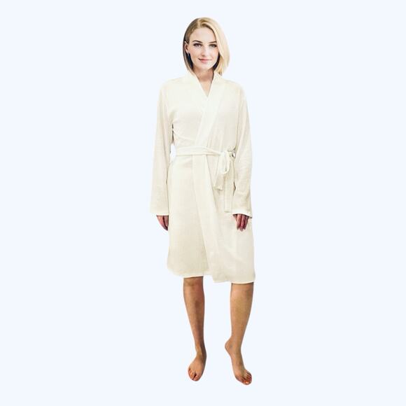 Women Soft Robe Waffle Knit Lightweight Spa Shower Bathrobe Kimono OneSize White
