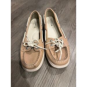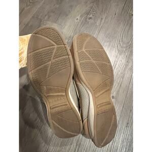 In very good condition. One small spot on the front of the shoe. And some wear on the interior pad might be cleanable. Maybe worn once or twice. Soles are clean. Size 8 womens