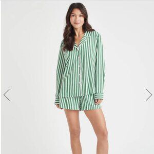 Women Splendid x Cella Jane White Green Stripe 2 PC- Set Collared Top/S Short/M