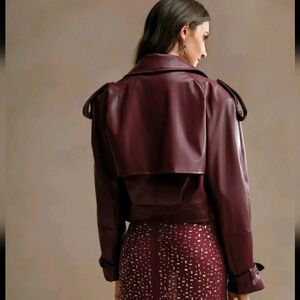 Women Spring Autumn Plain Stand Collar Long Sleeve PU Leather Loose Short Casual