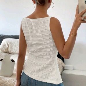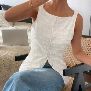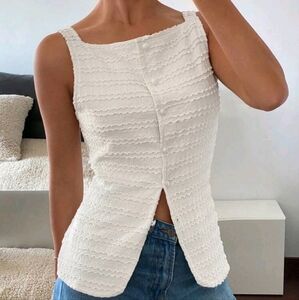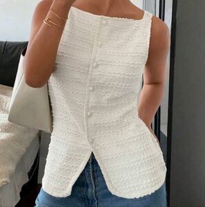 Women Square Collar Open Placket Buttons Sleeveless Textured Horizontal Stripes