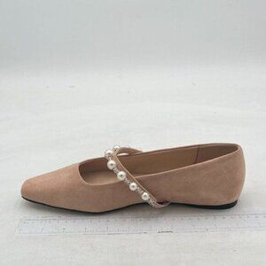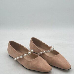 Women Square Toe Slip on Flats Pearl Studded Strap Elegant Pumps Wedding Bride