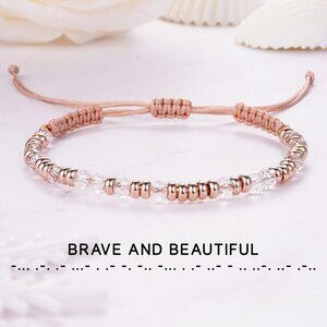 Features: This sleek stainless steel bracelet features a braided chain design with no clasp, so you can slide it on easily. The Morse code translates empowering messages like bravery and confidence, making it perfect for daily motivation or gifting. Lightweight, durable, and designed to fit comfortably.