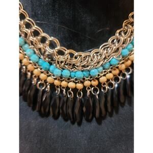 Women Statement Necklace With Turquoise Beads Black Drops And Lobster Clasp Lock