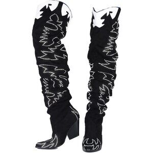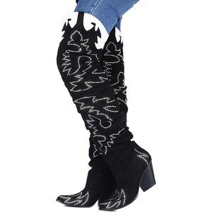 Thigh High & Over-The-Knee Silhouette: Elevate your western style with these women’s boots—dual-length design (thigh high to over-the-knee) blends cowboy/cowgirl charm with trendy fashion