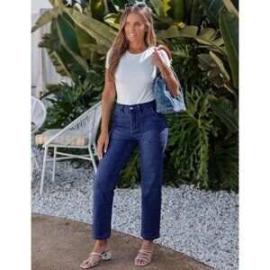Women Straight Leg Jeans High Waisted Stretchy Denim Ankle Length Pockets