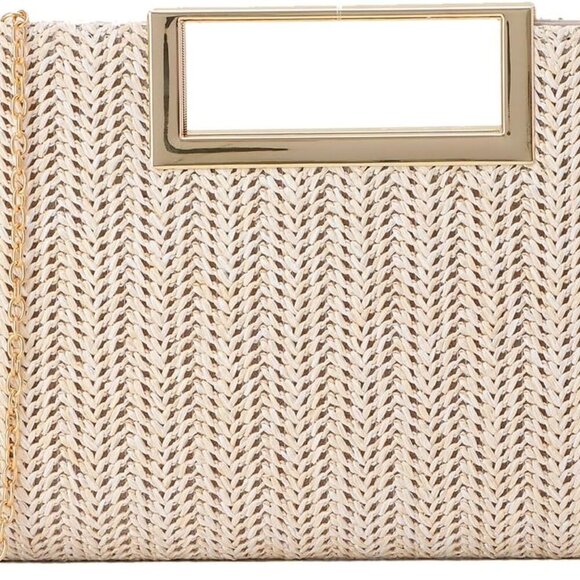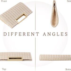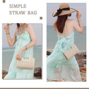 Women Straw Clutch Top Handle Woven Summer Evening Crossbody Bag Purse