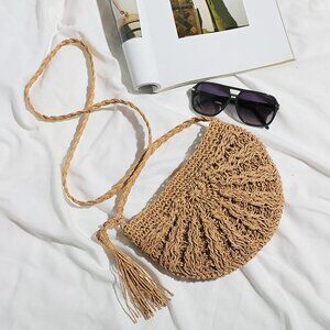 Women Straw Crossbody Purse Straw Clutch Bag Summer Beach Shoulder Handbag Woven