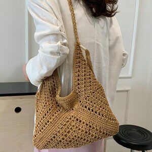 Women Straw Tote Bag Large Woven Summer Beach Purse Shoulder Handbag