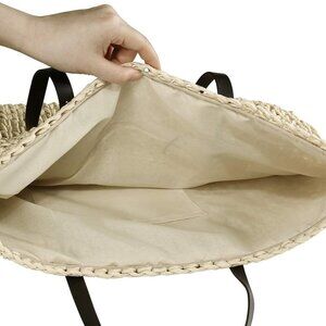 Material: Handwoven Straw, inner material polyester Lining, PU Shoulder Straps.