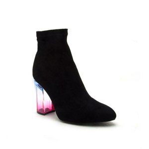 These faux suede booties are made with a pointy toe, stitch details and single sole. Also made with a socklike shaft, contrasting colored lucite block heel and easy to pull on design. Pairs well with a cute dress, jeans and a tank, or even a business suit! These are perfect to update any outfit you have!