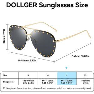 RIVET AVIATOR SUNGLASSES: PC UV400 anti-glare lens, metal frame, double bridge, thin temples, adjustable clear nose pads, fashion aviator studded shape design, The rivets on the surface of the lenses add a touch of sophistication to these unique oversized aviator sunglasses, Lightweight metal frames and Temples give you a stress-free wearing experience, All the details make this rimless oversized sunglasses more durable, shatterproof, and fashionable