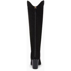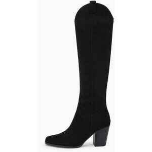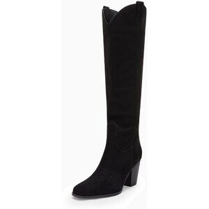 Women Suede Black Cowboy Knee High Chunky Block Heel Square Toe Tall Riding Boot
