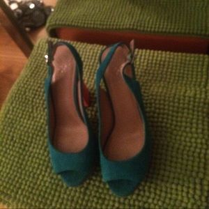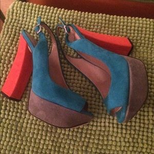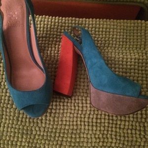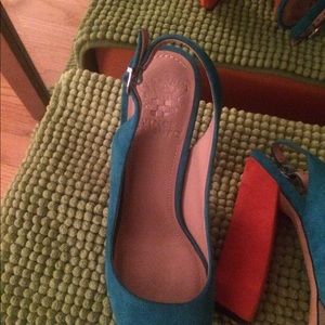 Beautiful Vince Camuto Suede Platforms Pumps... Vintage and Free People Look.. Orange and Teal.. Purchased at the Nordstrom Store. Very Good Condition. Worn ONLY a FEW TIMES; Gorgeous Must Have! Please see photos.
