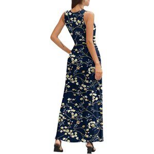 It is such a great simple design that flatters your figure. Empire waist hides all sorts of extra tummy and make your more elegant and confident. Floor length maxi dresses, sleeveless, the deep v neck is a little low and will show your sexy shape. Also you can wear a cami or a pin for a more conservative look. Addition, two handy pockets are added bonus for small items as such mobile phone, keys and cards.