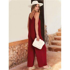 Women Summer Casual Boho Wide Leg Jumpsuits Burgundy
