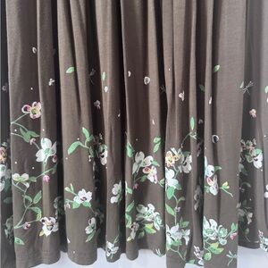 This elegant brown dress features a charming floral design at the hem, perfect for any occasion. Its soft fabric and flattering fit make it a must-have addition to your wardrobe.