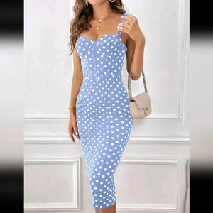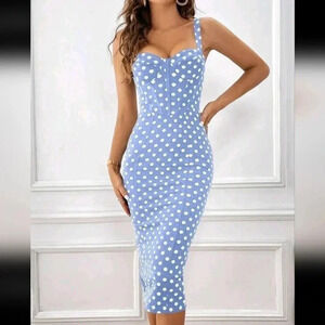 Women Summer Polka Dot Printed Mermaid Hem Bodycon Spaghetti Strap E
