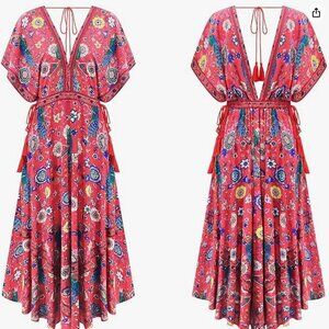 Versatile and casual midi dress shows the curves nicely; The v neckline, bohemian floral print and a-line flowy hem is everything is feminine it's flattering on anyone’s body type