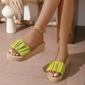 Women Summer Slip-On Wedge Thick Platform Sandals Beach Vacation Leisure