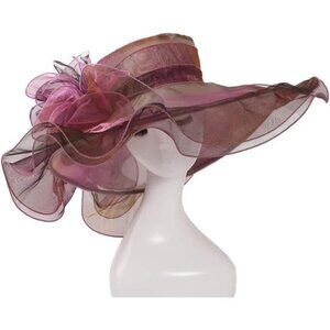 Women Sun Hat Church Wide Brim Dark Red
