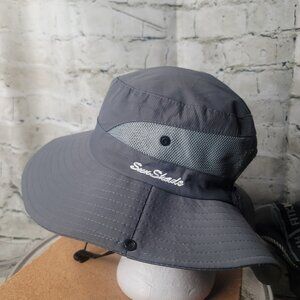 Women Sun Hat Ponytail Hole Sun Shade Hat UV Protection Foldable Mesh Gray Snap