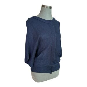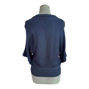 Women Sweater Navy Blue Rayon Blend Short Sleeve Cardigan Button Front Sweater