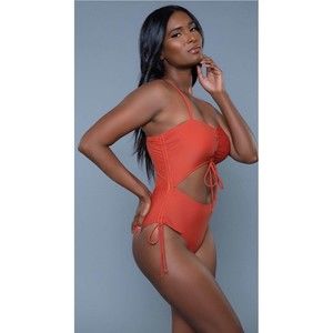 Spice up your swimwear collection with this coffee-colored one-piece swimsuit!