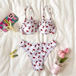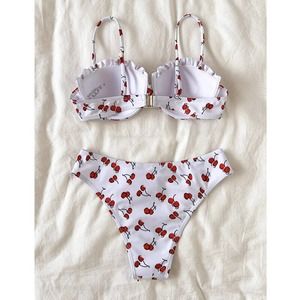 Women Swimsuits 2Pcs Bikini Bathing Suit Cherry Print Beach Swimwear