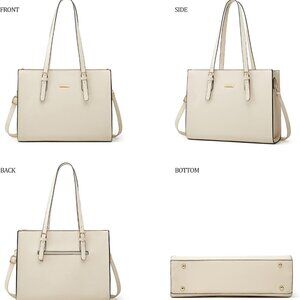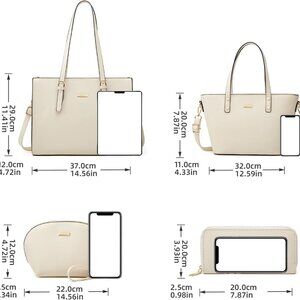 Features: This 4-piece handbag set includes a large tote, a crossbody bag, and a cosmetic pouch — perfect for keeping your essentials organized. The faux leather feels super soft yet sturdy, making it ideal for shopping, traveling, or work. The large tote has multiple pockets, including a back zipper for easy access, and the crossbody comes with a long strap for comfy, hands-free wear.