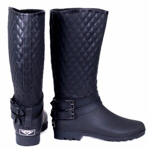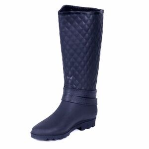Women Tall Matte Rain Boots, RB-1904, Quilted Black
