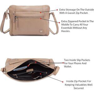 Women Taupe Imported Leather Polyester Crossbody Sling Shoulder Crossover Bag